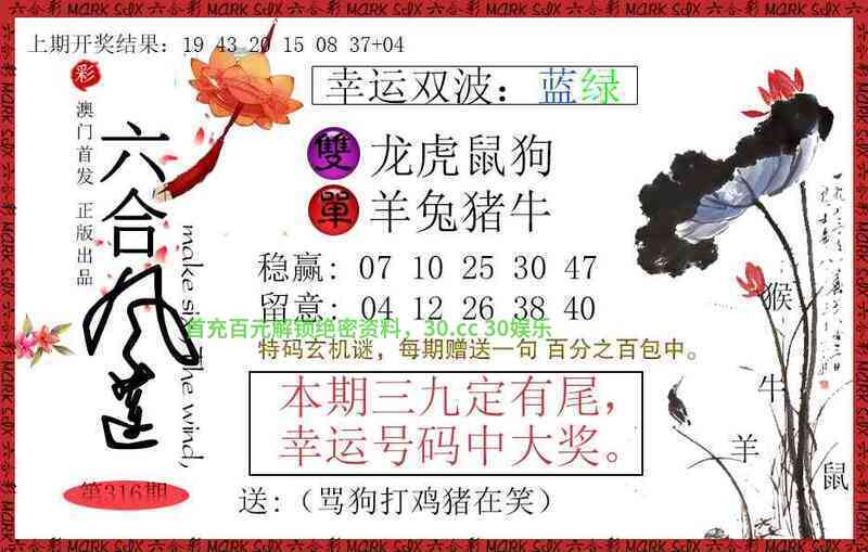 315期❣天地两肖地肖+牛兔』开❣虎04准